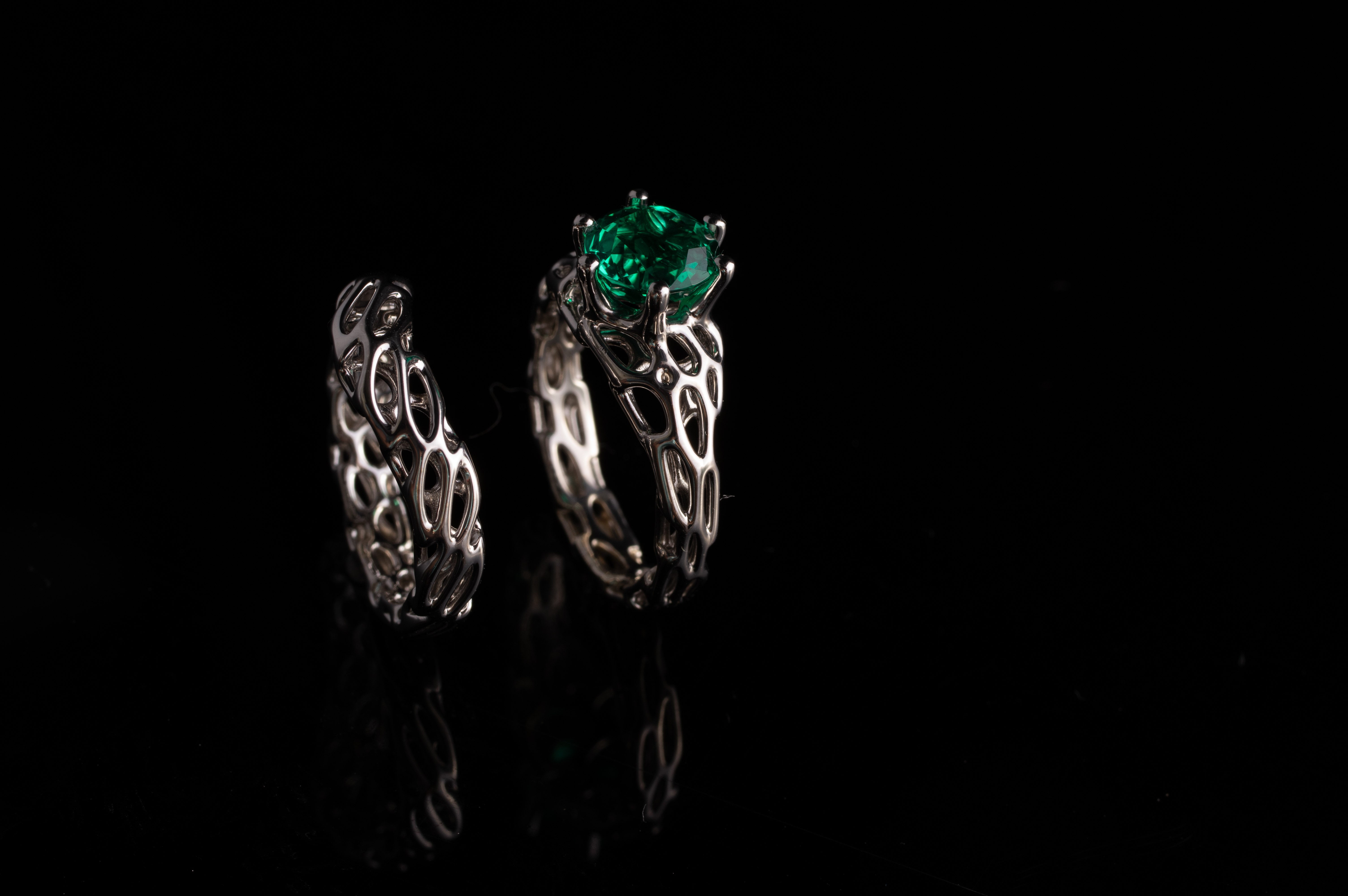cell cycle engagement ring with emerald
