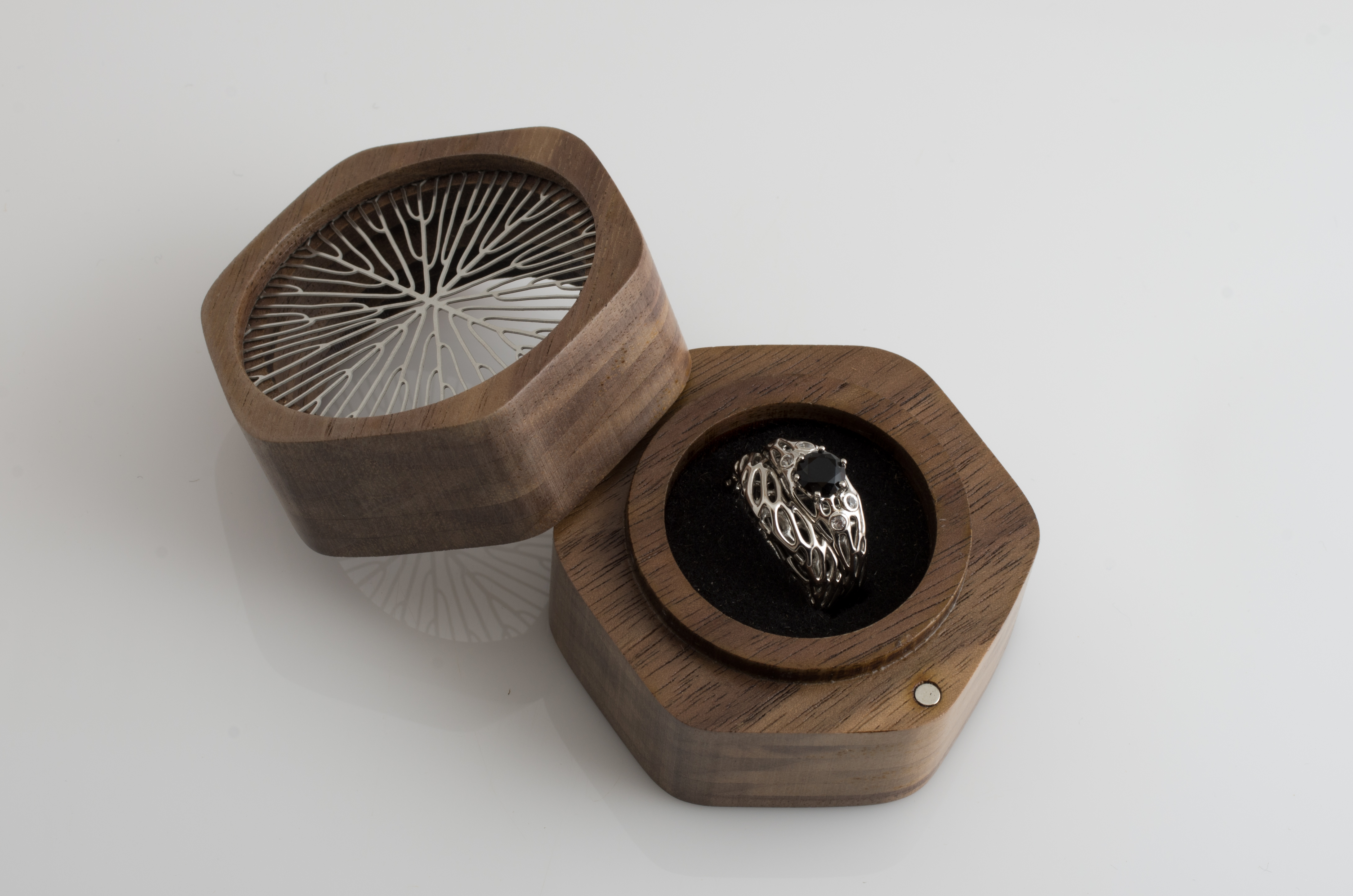walnut and stainless steel ring box
